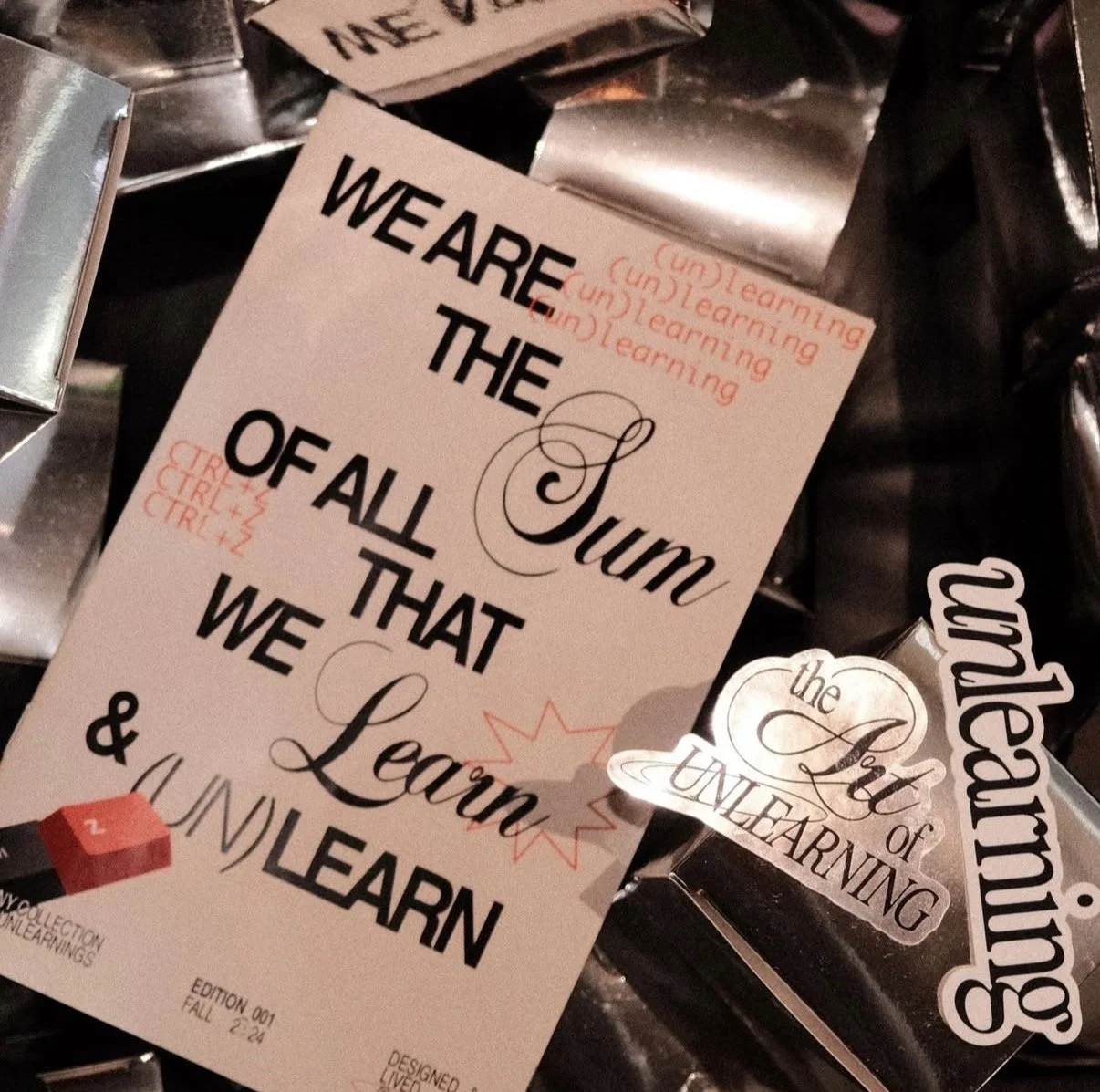 A limited-edition merch drop following the popularity of her ‘The Art of Unlearning’ series. Featuring stickers and zines designed by Mylene.